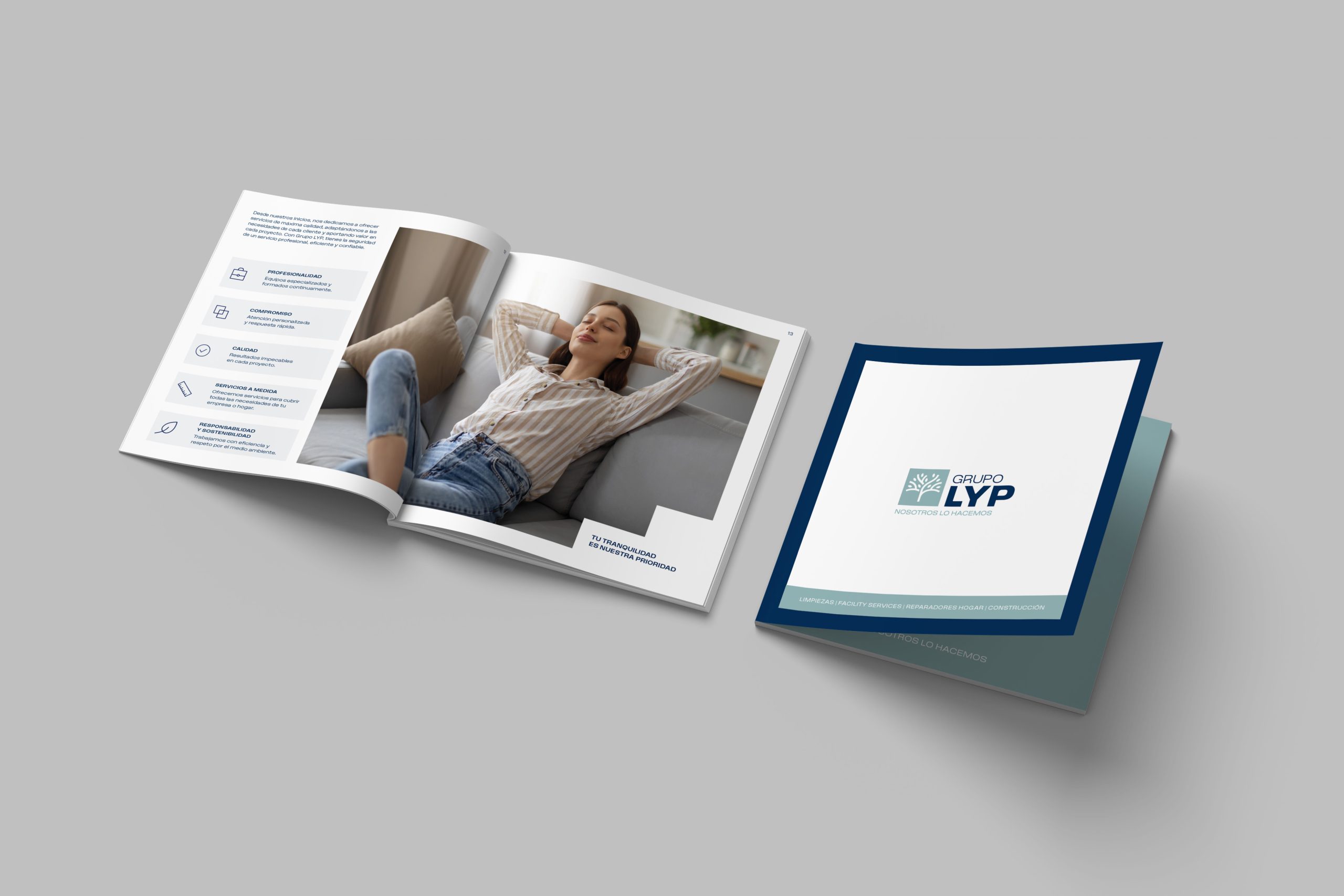Grupo LYP es una empresa gallega con más de 30 años de experiencia en servicios integrales: desde limpiezas y facility services hasta reformas, construcción y apoyo al sector asegurador en todo tipo de proyectos en Galicia. Nuestro objetivo era actualizar y consolidar la presencia de una compañía con una amplia trayectoria, sin perder su esencia cercana, confiable y profesional.
